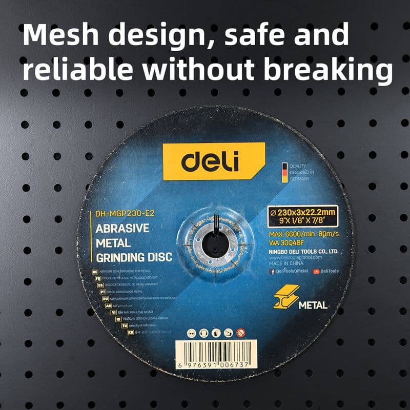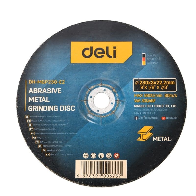 Потужний відрізний диск із заниженим центром — для швидкого та чистого різання металу. Розмір 230 мм і чорна абразивна поверхня забезпечують силу та зносостійкість. Етикетка — для зручної ідентифікації та викладки.