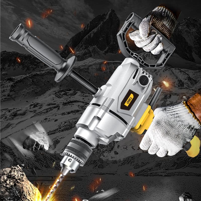 Потрібен потужний дриль для серйозних задач? Ця модель на 1200 Вт із патроном 16 мм забезпечує контрольовану потужність до 1000 об/хв. Перемикач напрямку та регулювання швидкості — для гнучкої роботи. У комплекті бічна та задня ручки для кращого контролю, плюс запасні вугільні щітки — все в яскравій коробці.