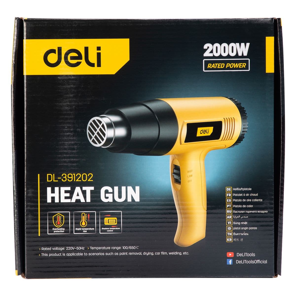 Фен будiвельний електричний 2000 (Вт) Deli EDL391202