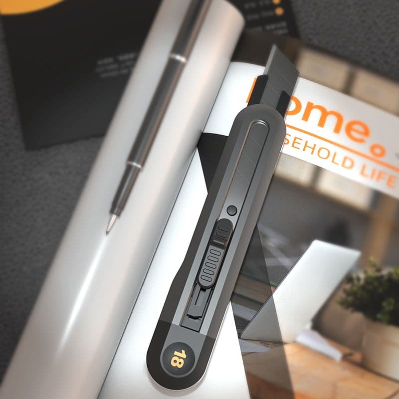 Міцний канцелярський ніж із телескопічною конструкцією та чорненим лезом SK5 — для точного різання. Легкий корпус із технічного пластику забезпечує комфорт і контроль у щоденному використанні. Упакований на блістерній картці для зручної презентації.
