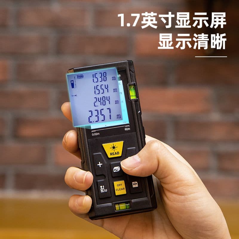 Вимірюй без обмежень — до 80 метрів! Точність ±3 мм, обчислення довжини, площі, об’єму та трикутника. Підтримка м/фут/дюйм, пам’ять на 30 вимірів. Ергономічний корпус ABS+TPR, авто вимкнення, лазер класу 2 (635 нм). Працює на батарейках AAA, упакований у яскраву коробку — бери й працюй!