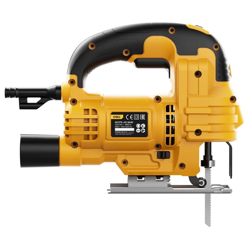 Потужний лобзик 800 Вт легко справляється з глибокими різами — точність і швидкість у кожному русі. Глибина різу 85 мм і яскравий жовтий корпус роблять його помітним і надійним інструментом у майстерні.