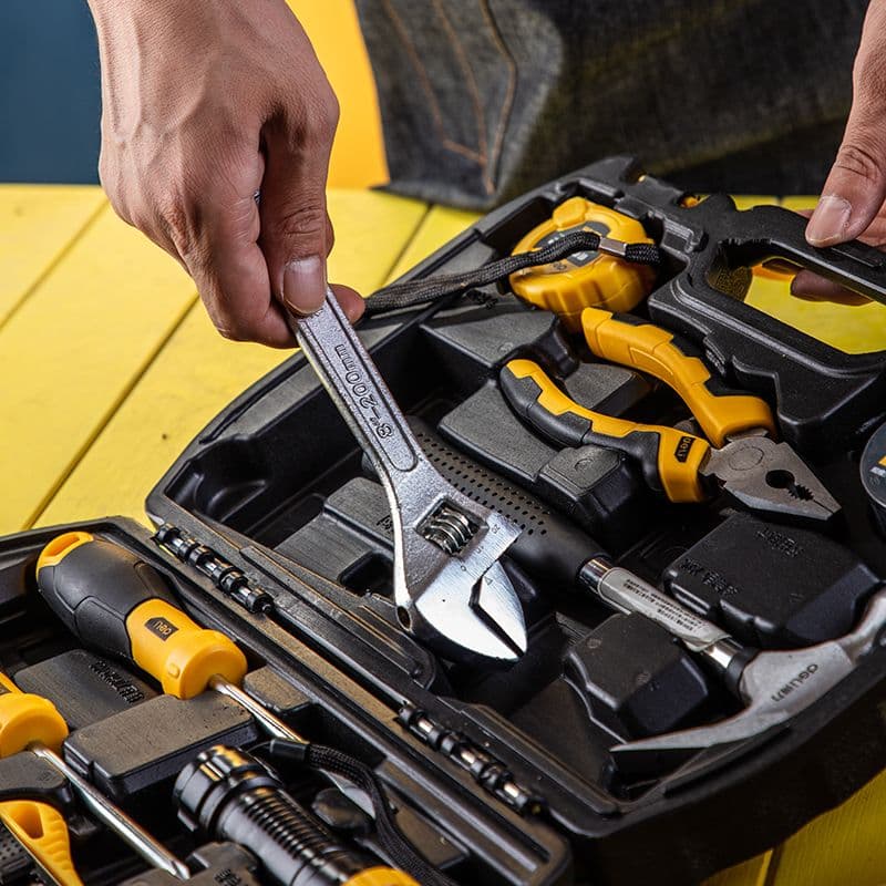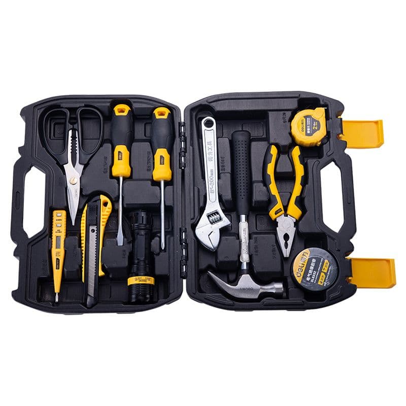 11 інструментів — компактний набір для щоденних задач. У комплекті: ножиці, світлодіодний ліхтарик, гайковий ключ 200 мм, канцелярський ніж, рулетка 3 м, цифровий тестер напруги, довгогубці, плоска та хрестова викрутки, молоток-гвоздодер і ПВХ ізоляційна стрічка. Ідеально для дрібного ремонту, домашніх справ і мобільного використання.