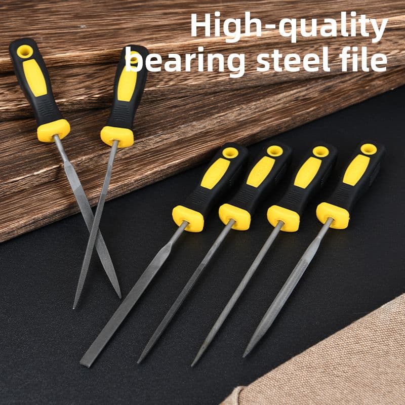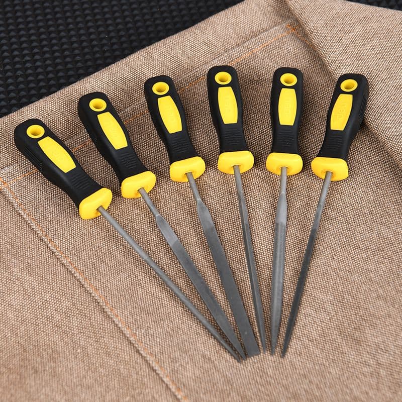 Універсальний набір прецизійних напилків із шістьма різними формами для тонкої обробки. Міцна сталь та зручні ручки з ПВХ-покриттям забезпечують контроль і надійність. Ідеальний для точних доробок по металу, дереву чи пластику, постачається на зручній картці з кріпленням.