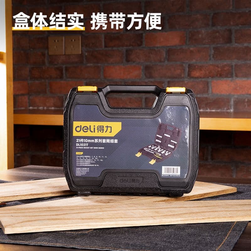 Набір торцевих головок 21 предмет Deli DL1021T — міцна сталь Cr-V для точних робіт. У комплекті: 12 стандартних метричних головок (6 – 19 мм), 4 глибокі головки (12, 13, 17, 19 мм), патрон для свічки запалювання 3/8" (150 мм) і храповий ключ 3/8". Ідеально для авто, механіки та домашнього ремонту.