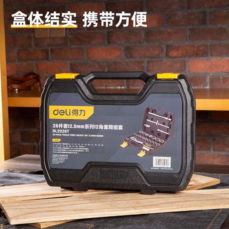 Надійність у кожній деталі — 26 предметів у наборі. Міцна Cr-V сталь, 20 метричних головок (10 – 32 мм), головка для свічок, кардан, два подовжувачі, Т-подібна ручка та тріскачка. Усе необхідне для ремонту авто, мотоциклів чи домашніх робіт в одному кейсі.