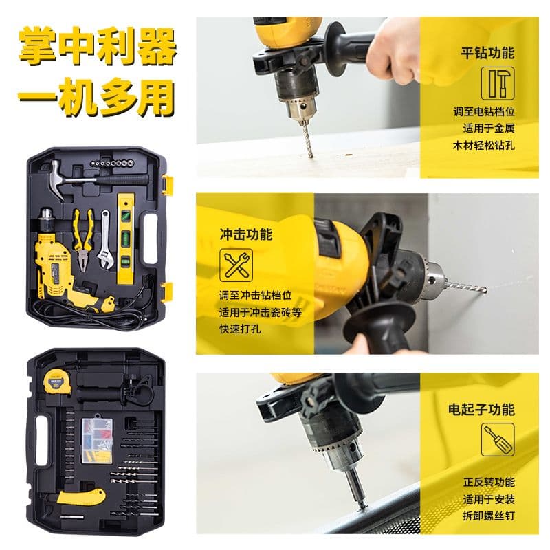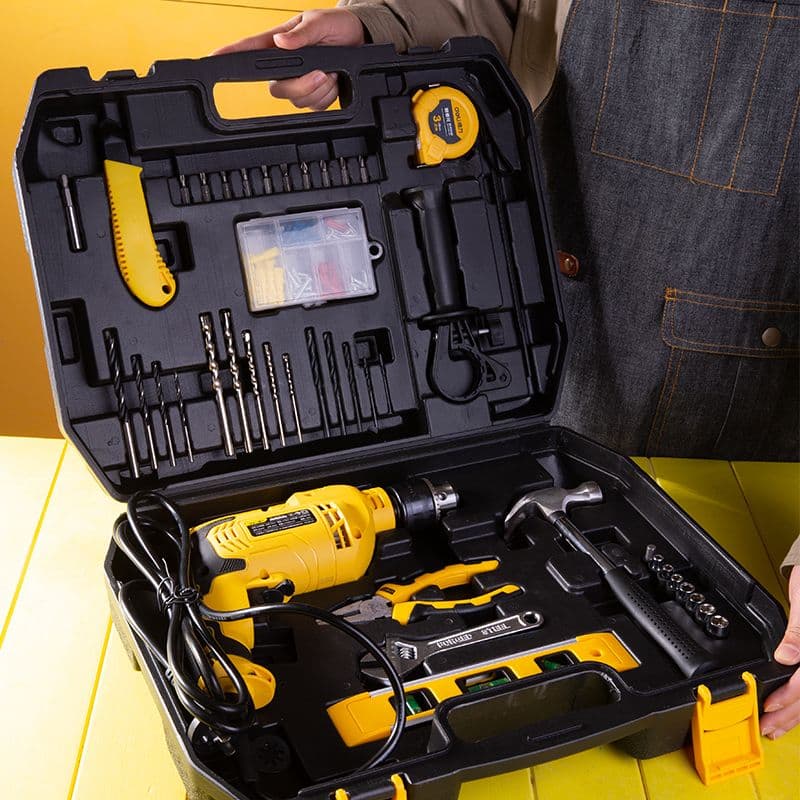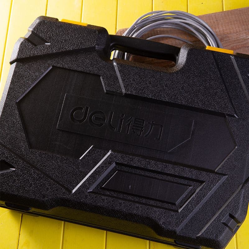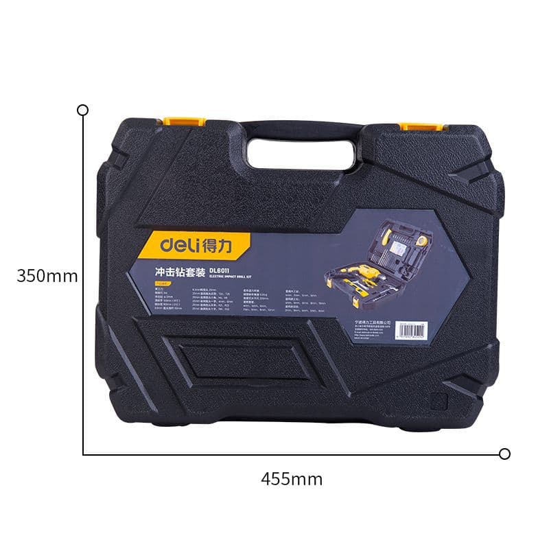 Набір з електродрилем Deli DL6011 — 76 аксесуарів і повний контроль. У комплекті: розвідний ключ 150 мм, рулетка 3 м, електродриль, міні-рівень 225 мм, біти для викрутки (Torx, Hex, PZ, PH), спіральні свердла (2 – 6 мм), свердла по дереву (4 – 8 мм), універсальні свердла (4 – 10 мм), канцелярський ніж, адаптер для біт, молоток-гвоздодер, плоскогубці та коробка з 76 аксесуарами. Ідеально для свердління, монтажу та універсального ремонту вдома.