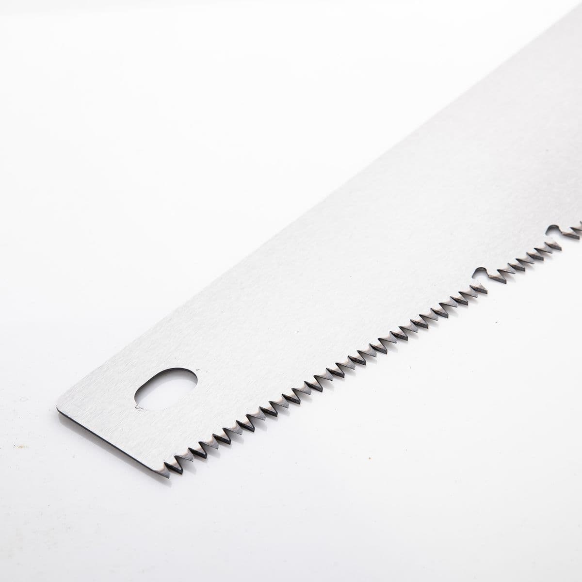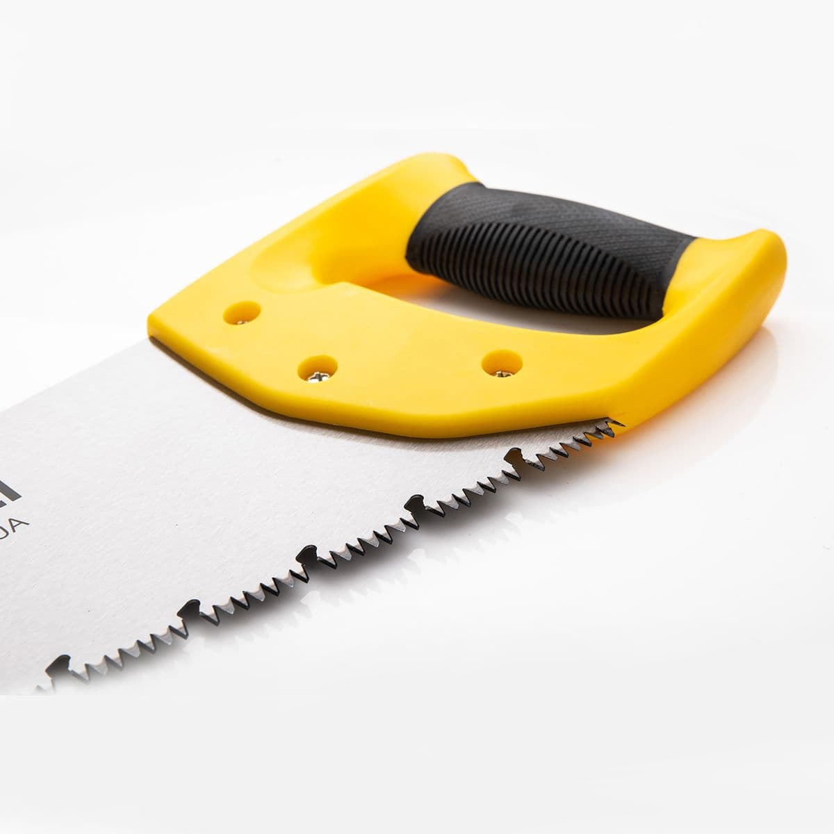 Лезо 400 мм з тричі заточеними зубцями — швидкий і чистий різ деревини та садових матеріалів. Виготовлено з термообробленої сталі 65 Mn, має жолоб для стружки та захист зубців для довговічності й безпеки. М’яка двоколірна ручка — для зручного хвату. Упаковано в картонну основу зі слайдом.