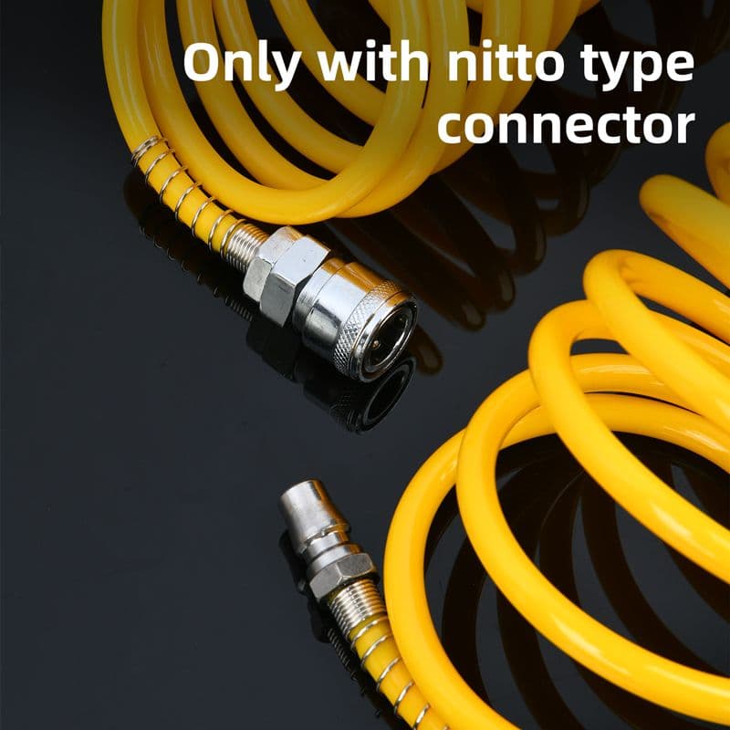 Гнучкий і легкий повітряний шланг із поліуретану для стабільної подачі повітря та зручного використання. Підходить для пневмоінструменту та майстерень. Оснащений зʼєднувачем типу Nitto та маркуванням для швидкого розпізнавання.
