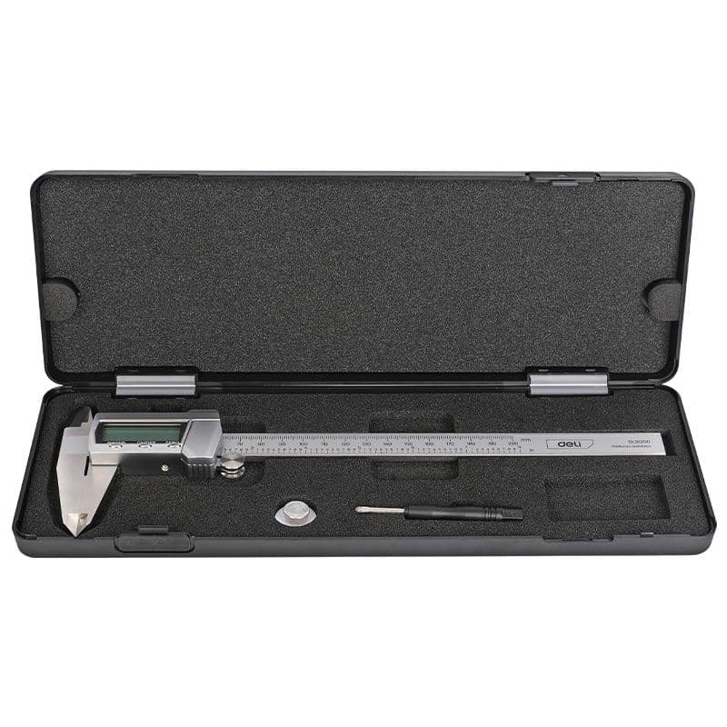 Точний цифровий штангенциркуль для вимірювань у метричній та дюймовій системах. Виготовлений із нержавіючої сталі, забезпечує довговічність та плавну роботу, ідеальний для професійного та аматорського використання. Постачається у захисному пластиковому футлярі.