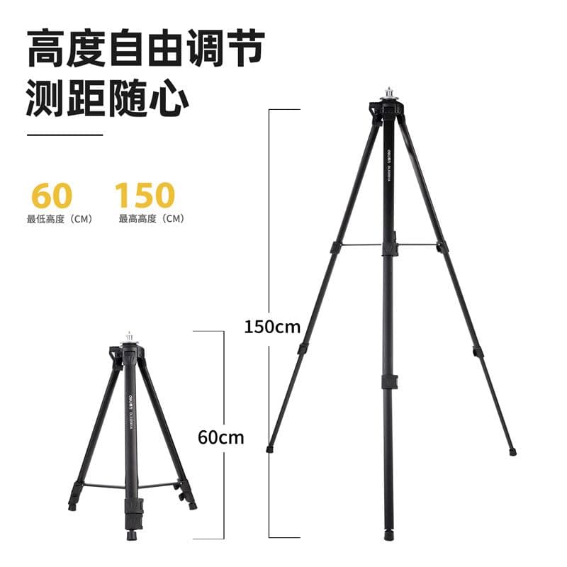 Легкий та стійкий штатив для лазерних рівнів. Виготовлений з міцного алюмінію, регулюється від 600 мм до 1500 мм, забезпечуючи універсальність для різних вимірювальних завдань. Завдяки різьбі 5/8" та вазі лише 1,1 кг його легко переносити, а точність вимірювань завжди залишається високою. Упакований у яскраву коробку.