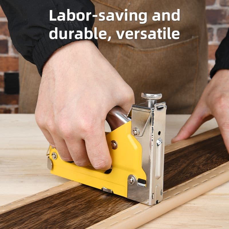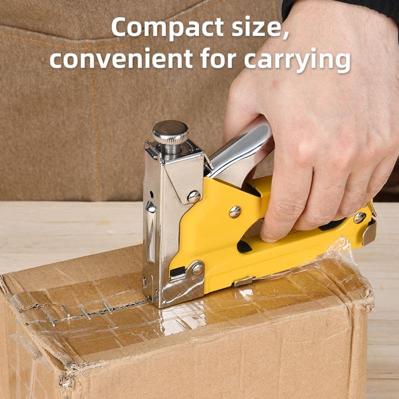 Міцний скобозабивний пістолет із заліза з регульованою силою удару — працює зі скобами 0,7 мм, коронкою 11,3 мм і довжиною 4 – 14 мм. Підходить для дерева, тканини та утеплювача. Упаковано в подвійний блістер — для захисту та демонстрації.
