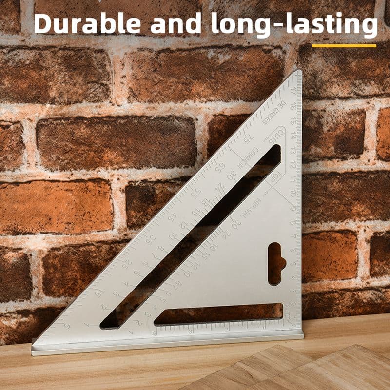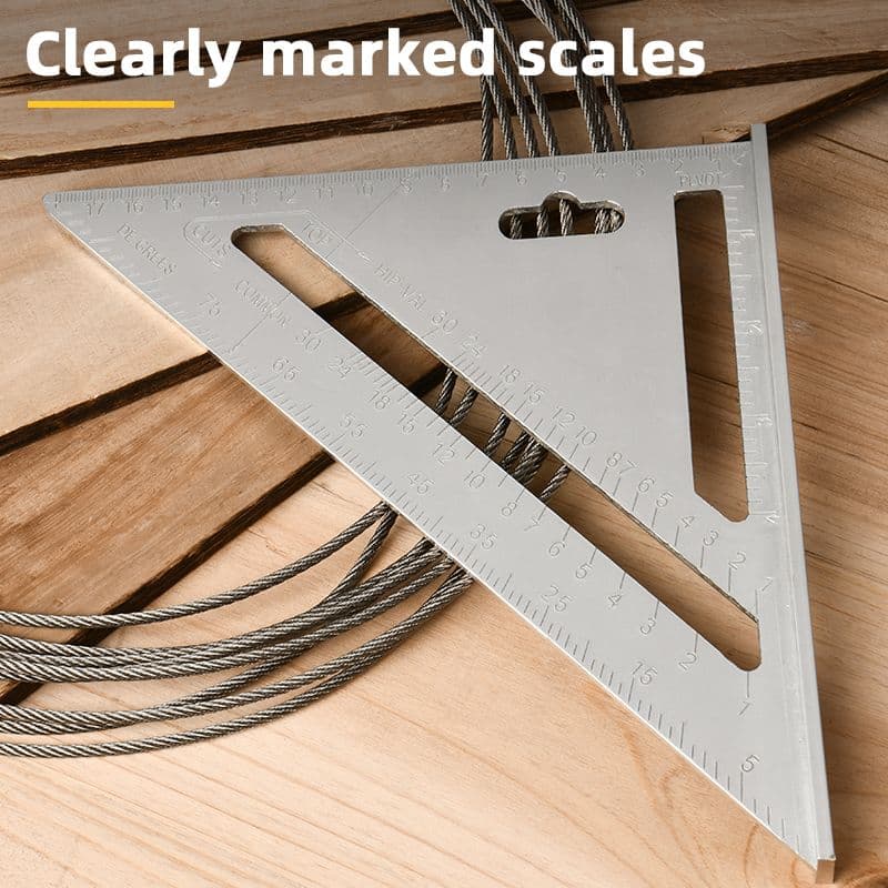 Точний столярний трикутник, який спрощує вимірювання та розмітку. Міцний алюмінієвий корпус гарантує довговічну точність, а подвійні шкали — метрична та дюймова — додають універсальності. Компактний і надійний інструмент, необхідний для столярних та будівельних робіт.