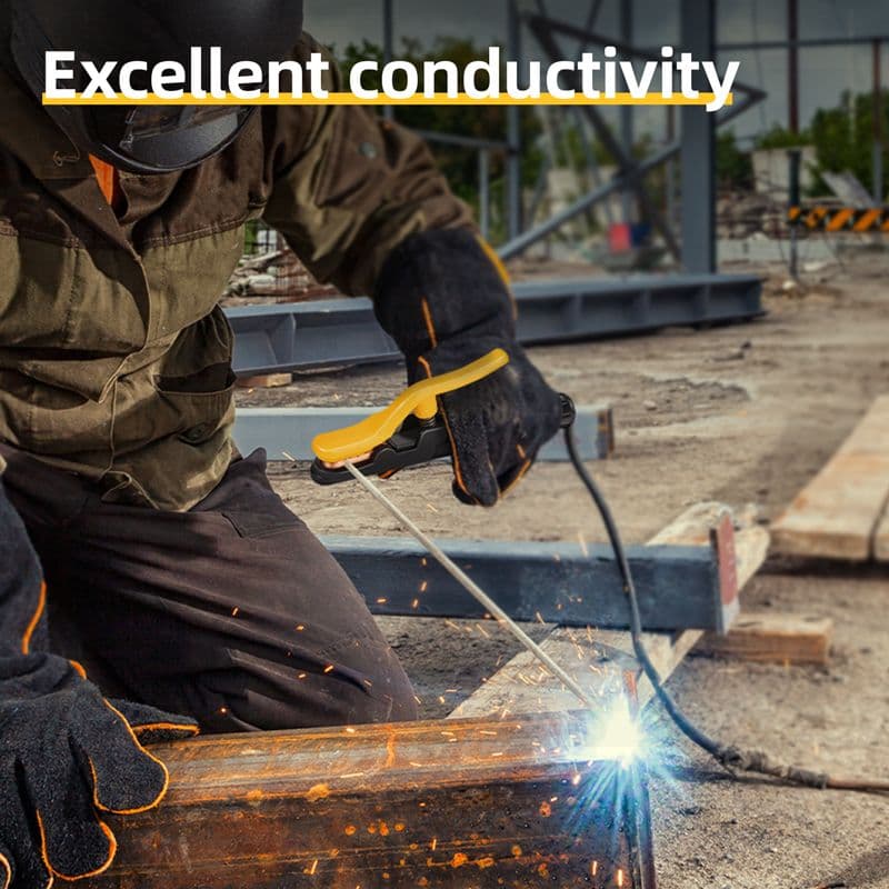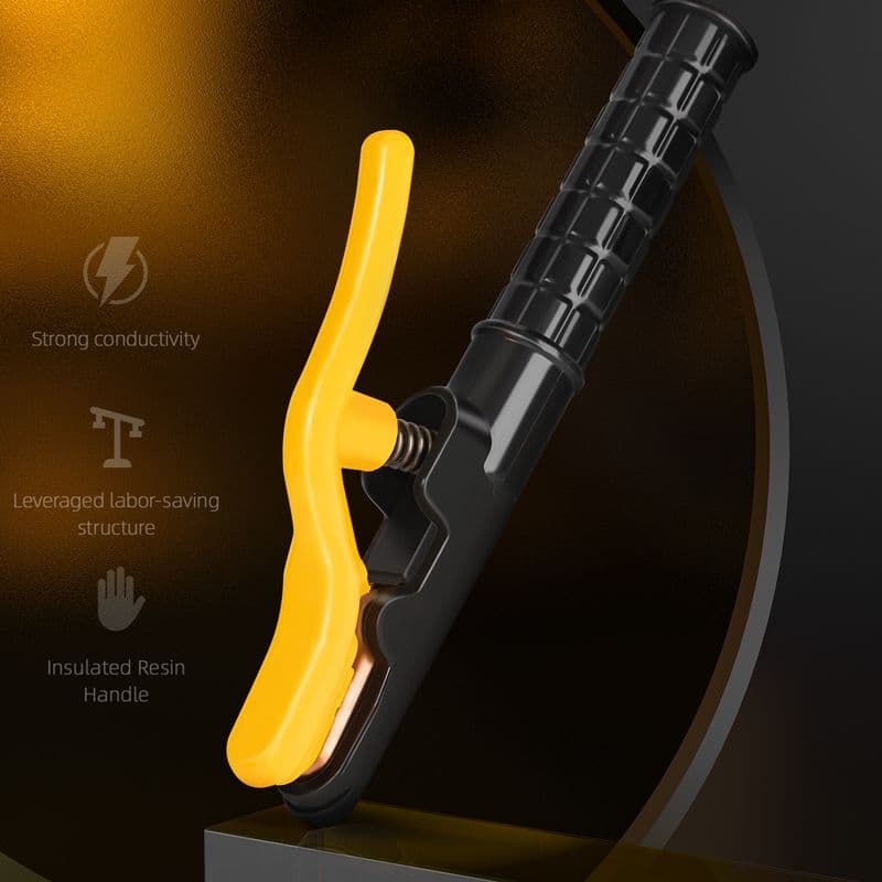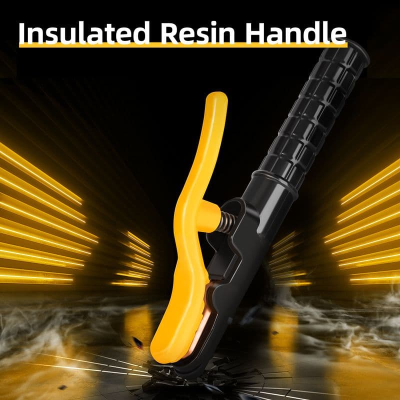 Потужний тримач електродів для стабільної дуги та високої провідності. Цілісний мідний корпус гарантує надійність, а ізольована рукоятка — комфорт і безпеку під час зварювання. Надійний вибір для MMA-апаратів до 500 А.