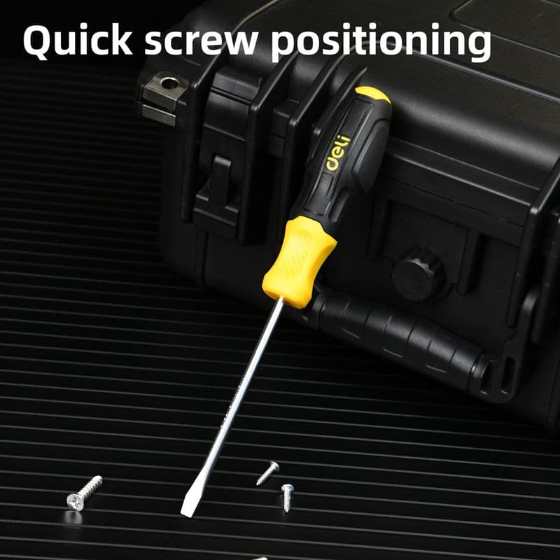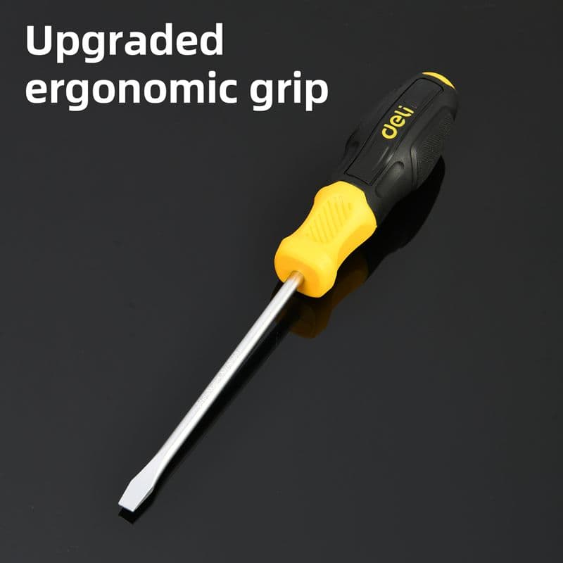 Вузька шліцева викрутка з довгим магнітним лезом із CR-V сталі — ідеальна для точних робіт та важкодоступних місць. Ергономічна двоколірна ручка забезпечує комфорт і контроль. У комплекті пластиковий підвіс — зручно для зберігання.