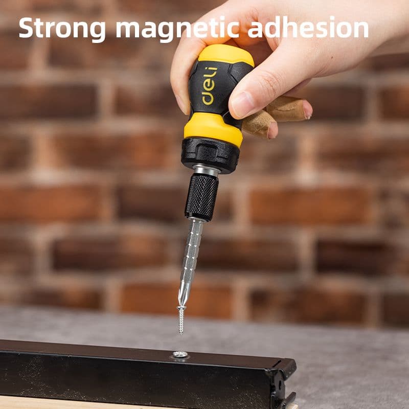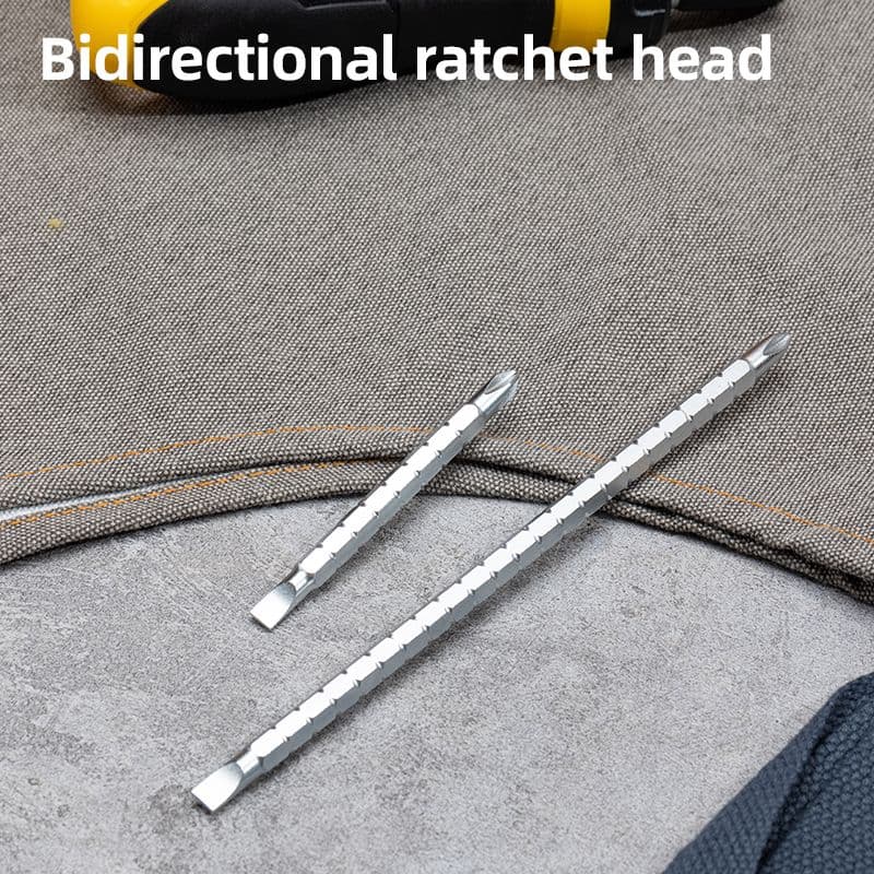Викрутка з тріскачкою подвійного призначення з змінними наконечниками PH2 і SL6 — для швидкої та універсальної роботи. Міцна конструкція з CR-V сталі, зручна картка зі слайдером — легко зберігати або викладати.
