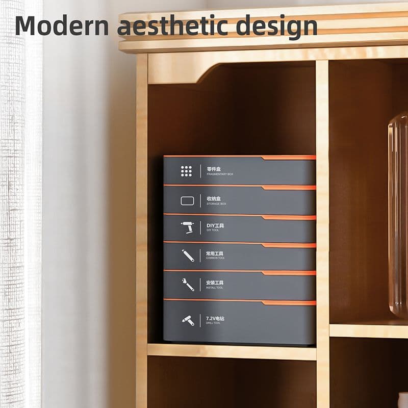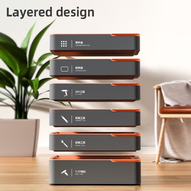 Стильний багатошаровий ящик для зберігання з магнітними кришками — ідеальний для дрібних деталей і аксесуарів. Має запатентований дизайн, гнучке компонування та молодіжну сіро-оранжеву гаму. Упакований у картонну коробку.